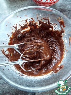 Не переставая взбивать, вылить тонкой струйкой шоколад с маслом.
