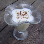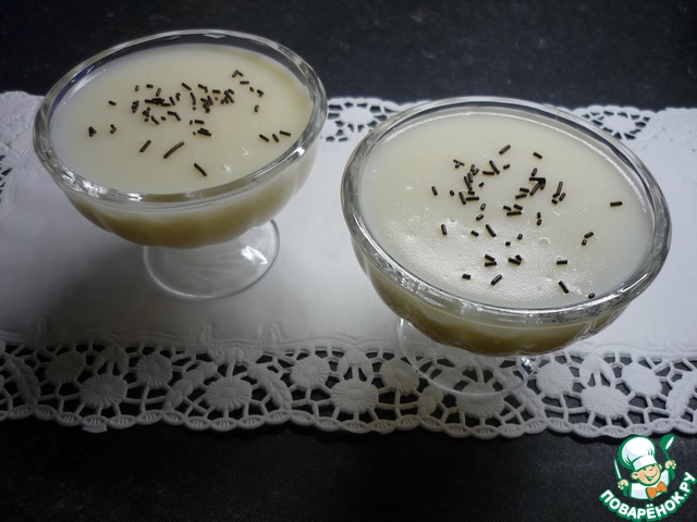 Если разводить 4 СТОЛОВЫЕ ложки крахмала с водой и после приготовления положить в холдильник, будет похоже на желе, очень вкусное.