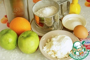 На фото продукты для приготовления непосредственно пирога. Я делала два пирога, один с яблоками другой с апельсином. Если будете делать один, то продукты для теста делите на два.