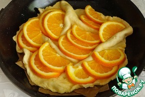 Точно так же поступить со второй половиной теста и разложить в складочки ломтики апельсина.