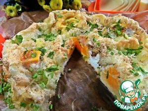 И рубленой зеленью, например, петрушкой. Отрезаем порцию, как тортик или пирог.