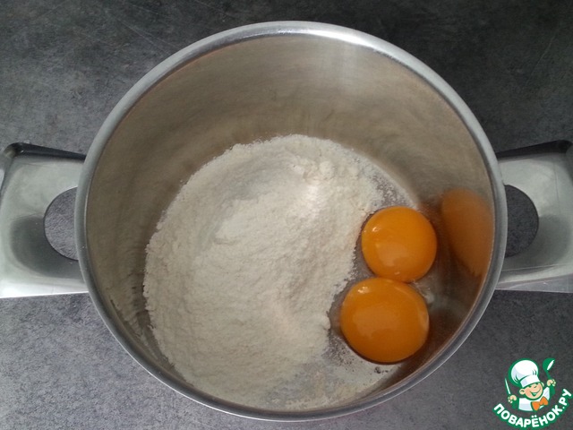 Смешиваем сахар с мукой, добавляем желтки и немного молока. -