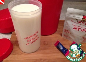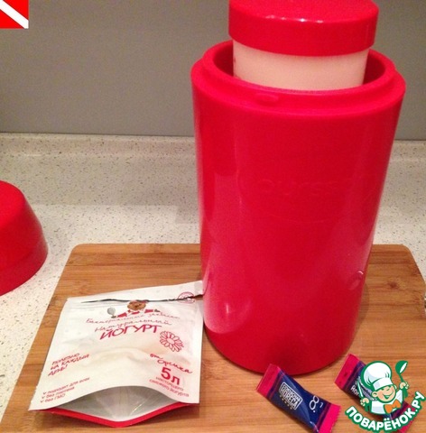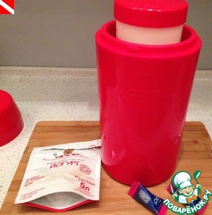Капсулу с молочной смесью необходимо поместить а йогуртицу-термос, в которую предварительно налить кипяток до указанной отметки. Оставить на ночь. Готовый йогурт убрать в холодильник.