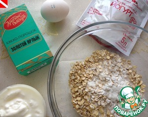 Смешиваем все сухие ингредиенты вместе. Овсяные хлопья можно предварительно перемолоть в кофемолке, я оставила так.