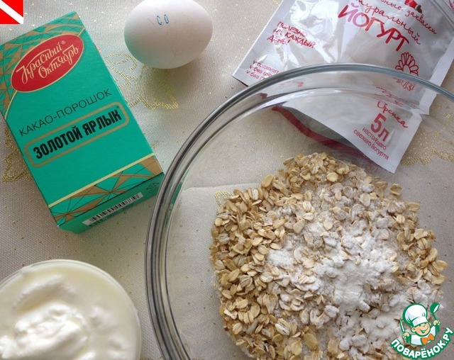 В чашу блендера положить готовый йогурт, налить молоко, разбить яйцо и засыпать сухие ингредиенты. Довести до однородности в течение 1-1,5 минуты.