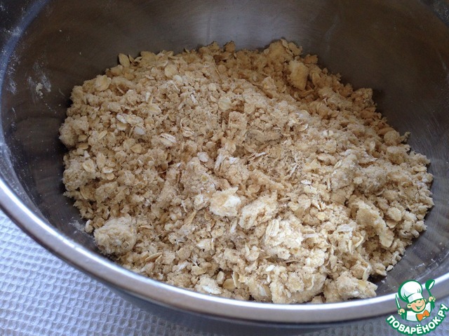 Добавить в мучную смесь масло, нарезанное на кусочки и растереть в крошку.