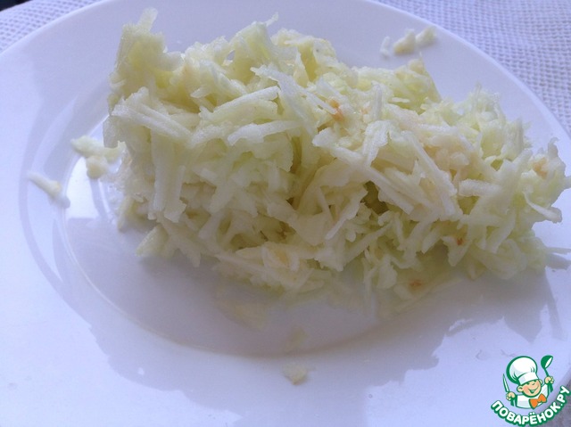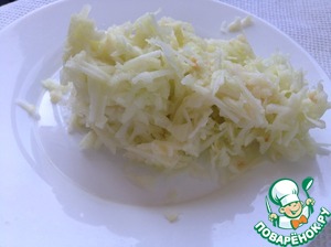 Яблоки (лучше брать кисло-сладкие и ароматные, примерно 3-4 средних) вымыть, очистить и натереть на крупной терке.