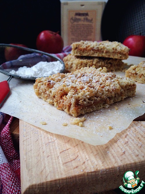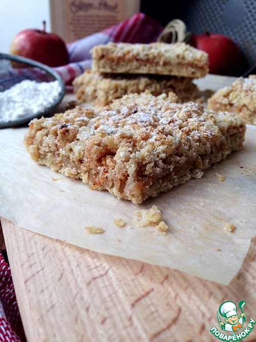 Очень люблю овсяную выпечку... и яблочную! Этот пирог два в одном. Нежный, ароматный и главное - не хлопотный в приготовлении. Минимум усилий, а результат Вас обязательно порадует! С начинкой экспериментировала и готовила с абрикосами и сливами, два варианта удачные!) В начинку сахар не добавляю, все и так в нем гармонично. Количество ингредиентов рассчитано на форму 20х20 см.
