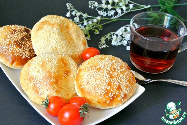 Сверху посыпать кунжутом. Выпекать лепешки в духовке, заранее разогретой до 220 градусов, минут 10 до румяности.