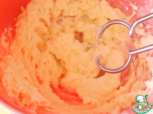 К размягченному сливочному маслу добавить сахар. Взбить миксером.