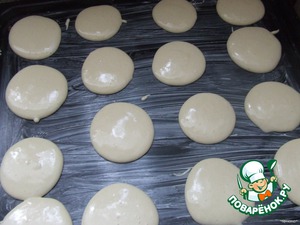 Теперь нужно взять противень, смазать маргарином и выкладываем чайной ложкой на расстоянии друг от друга лепёшки. Выпекаем в предварительно разогретой духовке 5-7 минут.