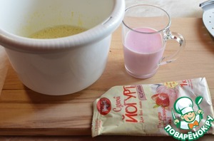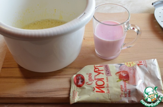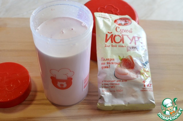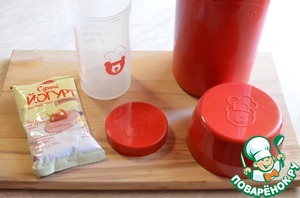 Для приготовления йогурта мне понадобился, термос-йогуртница, 1 литр воды и пакет сухого йогурта "Клубника"
