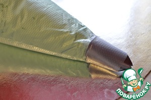 Бисквит достать и остудить. Пока бисквит остужается, залейте 30 г. желатина 100 мл воды для набухания.