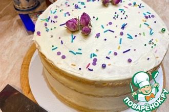 Цветы я выдавливала используя кондитерский мешок насадку-королевская роза. Цветы нужно отсаживать равномерно и практически вплотную друг к дугу. Так как я работала с кремом впервые, и вообще навыков с работой с кремами и кондитерским мешком у меня нет, цветы у меня все получились разные, некоторые открытые, некоторые закрытые и просто вытянутые. Но это абсолютно не повлияло на итоговый результат. Я буду обязательно тренироваться, для того чтоб добиться идеальных результатов. Уверена, с опытом все придет.