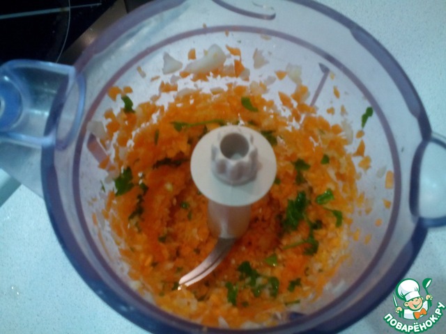 • В блендере измельчить морковь, лук, 1/2 пучка петрушки=>
