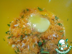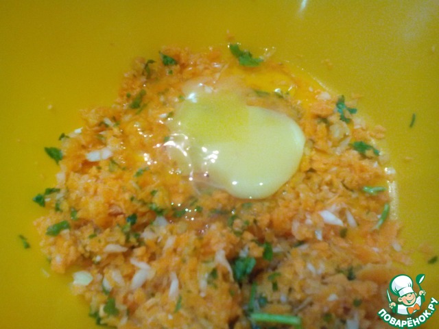 • В овощную измельченную смесь добавляем одной яйцо и перемешиваем=>