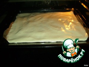 Готовую массу выложить на промасленный лист пергамента и выпекать в горячей духовке 10-12 мин. при температуре 180 град.