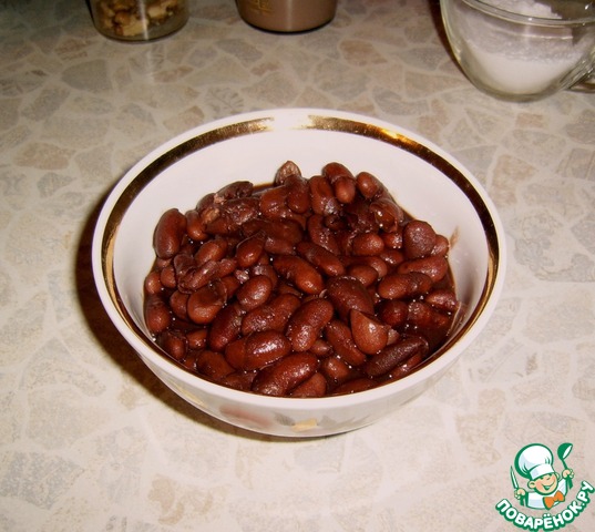 Замочите фасоль на ночь, затем отварите в течение 3 часов до мягкого состояния. В конце варки чуть–чуть солим и воду выпариваем почти до конца, оставляем примерно столько, чтобы сделать пюре из фасоли, добавив отвар.