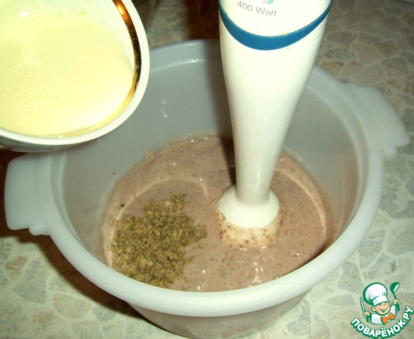 Добавляем какао-порошок, затем блендером делаем однородное пюре. -