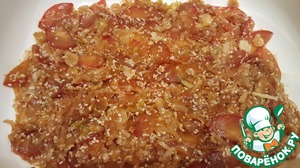 Добавить кунжут и помешивая обжаривать ещё пару минут.