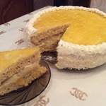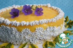Но мы не ищем лёгких путей и я залила сверху на крем апельсиновое желе. Я поставила кольцо для торта и залила желе.