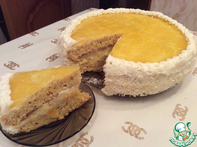 Желе наверное можно и из пачки - но я сделала сама, добавив в 250 мл апельсинового сока 4 пластинки распущенного желатина и залила торт.
