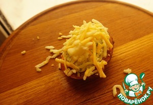 Присыпаем тертой моцереллой и запекаем в духовке при 200 градусах примерно 5 минут.