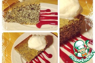 Аккуратно разрезать на 2 части (корж получается хрупкий)
