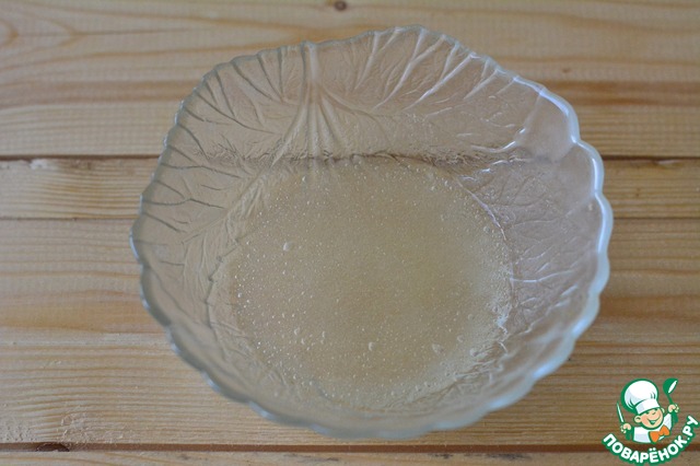 Набухший желатин растопить (удобно это делать в микроволновке - 10-20 секунд) и добавить в чашку с начинкой.