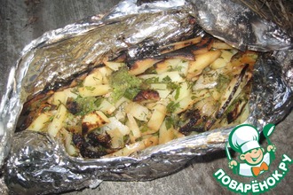 Картошечка, запечeнная с салом и ломтиком чесночка.