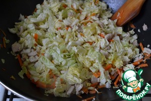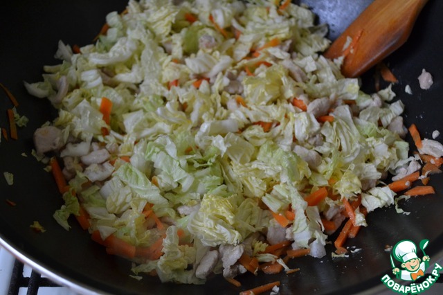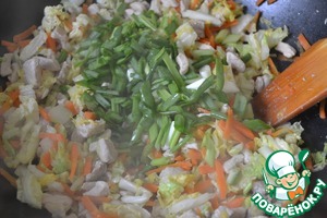• Добавить пекинскую капусту, обжарить в течение минуты.