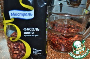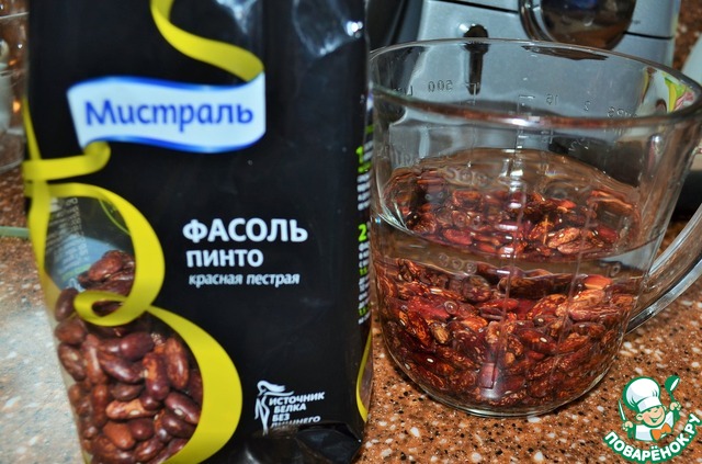 Время приготовления указано без учета варки фасоли и бульона. Фасоль замочить на 3 - 4 часа и отварить полностью, в 1 л. воды с сахаром. Я использую красную фасоль ПИНТО от "Мистраль".
