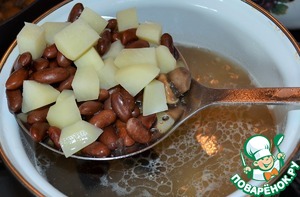 В бульон к картофелю добавить отваренную фасоль.