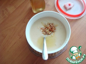 • Я ещё 1 зубчик чеснока выдавила в давилку, опять перемешала и отправила в холодильник, накрыв крышкой, постоять.