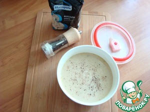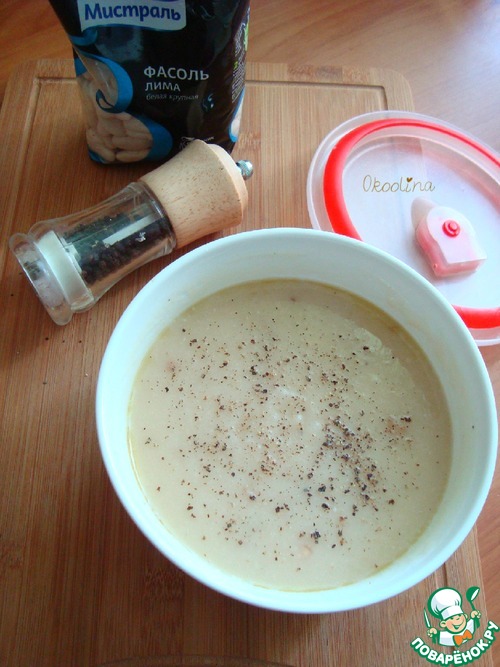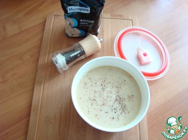 • Разбила фасоль в блендере. Посолила по вкусу. Жидкость из-под фасоли не слила, а когда разбивала, понемногу доливала в фасоль. Плотностью можно сделать паштет по вашему вкусу. Я люблю не очень плотный.