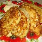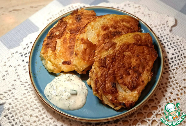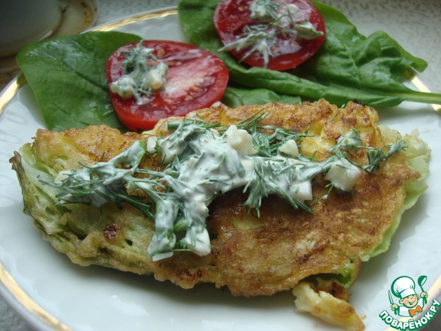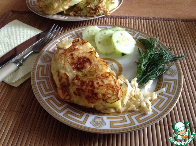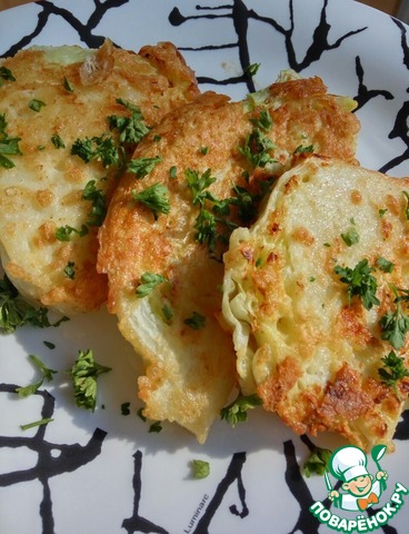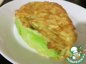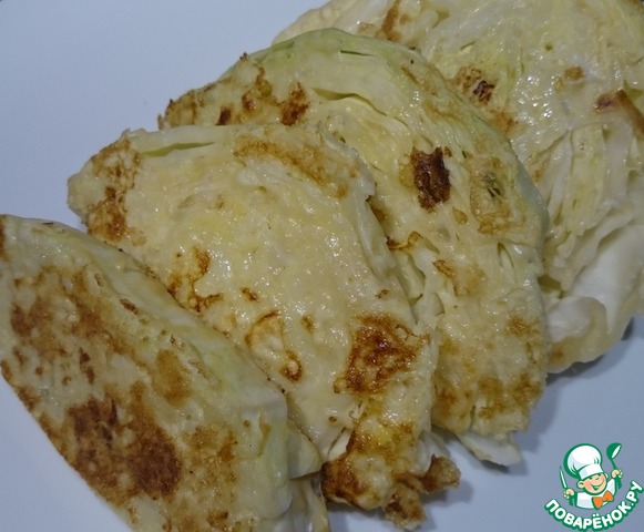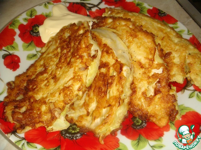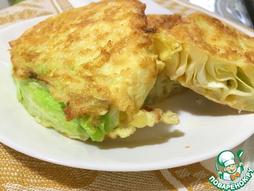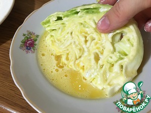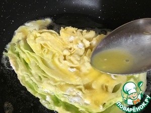 Жарим на подсолнечном масле. Поливаем капусту яичной смесью. Обжариваем с двух сторон до золотистого цвета.