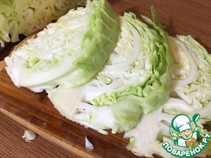 Для этого блюда нужна молодая капуста. Режем капусту "дольками".