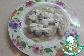• В кастрюлю наливаю около 2-х литров воды, солю по вкусу, довожу до кипения. В воду опускаю вареники (варю их в несколько приемов), время от времени помешиваю. Готовлю вареники примерно 8 минут после того, как они всплывут, вынимаю с помощью шумовки в миску. Пока готовятся вареники, обжариваю репчатый лук на растительном масле. Вареники поливаю зажаркой, посыпаю нарезанным укропом. Подаю вареники со сметаной. Приятного Вам аппетита!