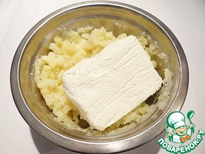 • К картофельно-творожной массе добавляю фасолевое пюре, снова перемешиваю.