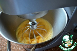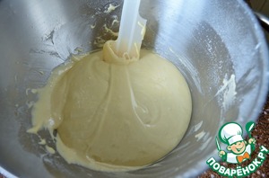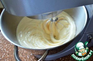 Включить духовку. Взбиваем массу миксером, на высокой скорости. Масса увеличится в объеме