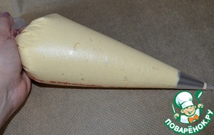 Переложить тесто в кондитерский мешок. При отсутствии мешка, выкладывайте тесто ложкой.