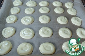Отсадите тесто на пекарскую бумагу, имейте ввиду - печенье увеличится в объеме и немного расплывется. Оставьте расстояние между ними. Выход 2 стандартных противня.