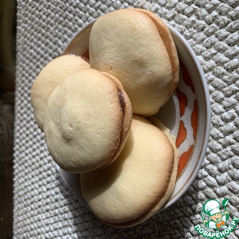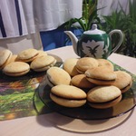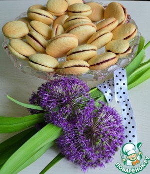 Как бы мы не старались, размер печенья слегка отличается. Поэтому подберите вначале печенье по парам. А теперь : на одну половинку кладем 1 ч. л. варенья или джема, накрываем второй половинкой, слегка надавив.