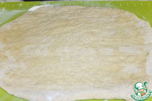 На присыпанной мукой рабочей поверхности не тонко раскатываем тесто и смазываем его растительным маслом.