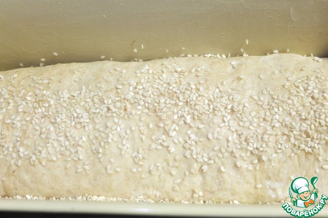 После расстойки смазываем верх растительным маслом и посыпаем кунжутом.