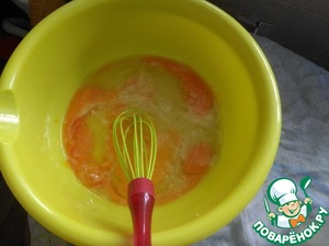 И так, сначала взбиваем яйца, соль и сахар. Далее вбиваем в эту сместь сливочное масло.