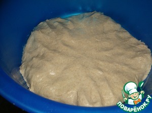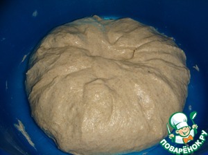 Получается такое тесто. Накрываем и оставляем на 120 минут при комнатной температуре.