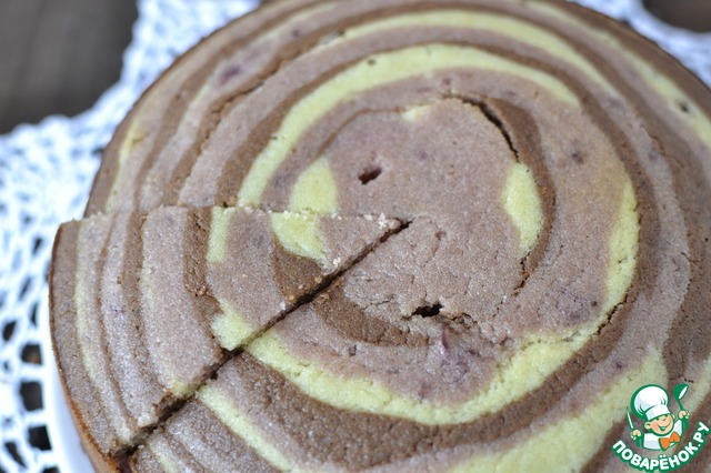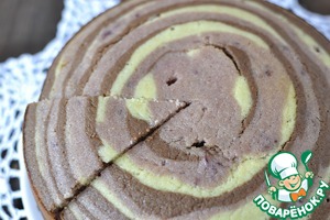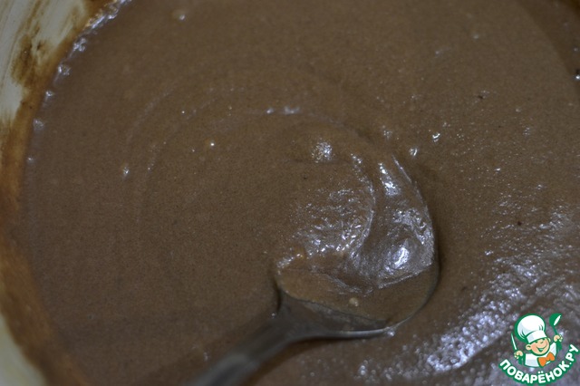 Затем наливаем в предварительно смазанную форму сначала шоколадную, затем светлую, затем вишневую массы. Что бы был контраст. Ставим в предварительно разогретую до 200 град. духовку.