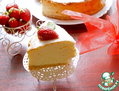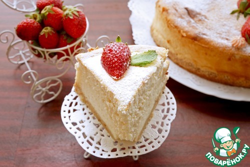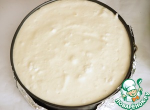 Ставим в духовку на 10-15 минут, верх должен подрумяниться, теперь снижаем температуру до 160 градусов, приоткрываем дверцу духовки, подкладываем что нибудь, что бы она не закрылась и печем еще 1 час. По окончании выпечки духовку выключаем, оставляем на 10 минут как было, затем дверцу еще чуть чуть приоткрываем, но не до конца. Оставляем еще на 20 минут. Затем вынимаем чизкейк и охлаждаем. -