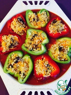 Рецепт «Овощной булгур с грибами в болгарском перце»: